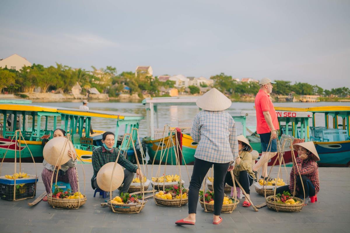 Không gian phố cổ Hội An sáng sớm rất trong trẻo, yên bình vì không có những dòng xe tấp nập, không khói bụi và trên đường chỉ có mấy o mấy dì tất bật với gánh hàng rong mưu sinh. Lúc này, nhịp sống ở đây như chậm hơn bội phần. Lúc này, điều mà nhiều du khách du lịch Hội An muốn làm nhất là chẳng cần làm gì và vươn lồng ngực để hít căng buồng phổi bầu không khí rất Hội An này.